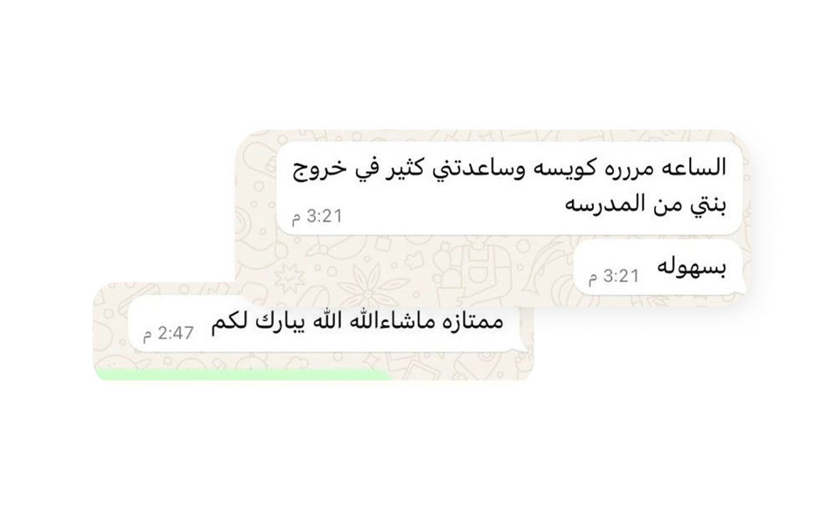 كلنا مرينا بنفس الموقف: توقف السيارة عند المدرسة، الشمس لافحة، والزحمة تخنق، وتبدأ تنادي بكل قوتك: “يلا يا نورة.. أسرعي يا سارة!”، لكن ما في تجاوب. يا تنزل بنفسك، يا تنتظر وتتعذب. مع “ساعة ناديني”، ودّع هالمواقف للأبد!